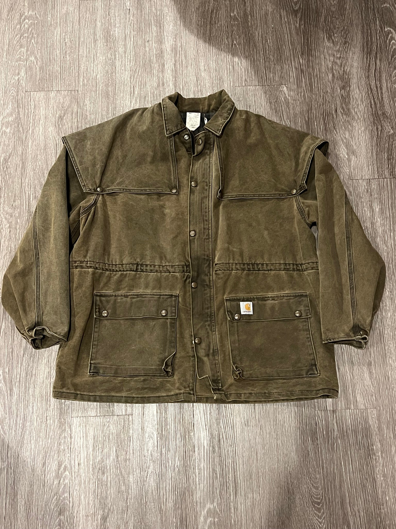 Beautifully aged Vintage Carhartt Mens Canvas Duster Jacket Ranch Barn Coat CW042 USAVintage - XL - measurements in photos