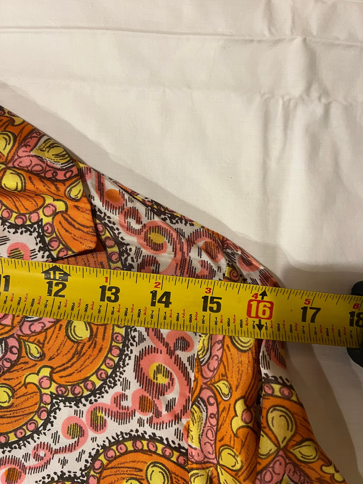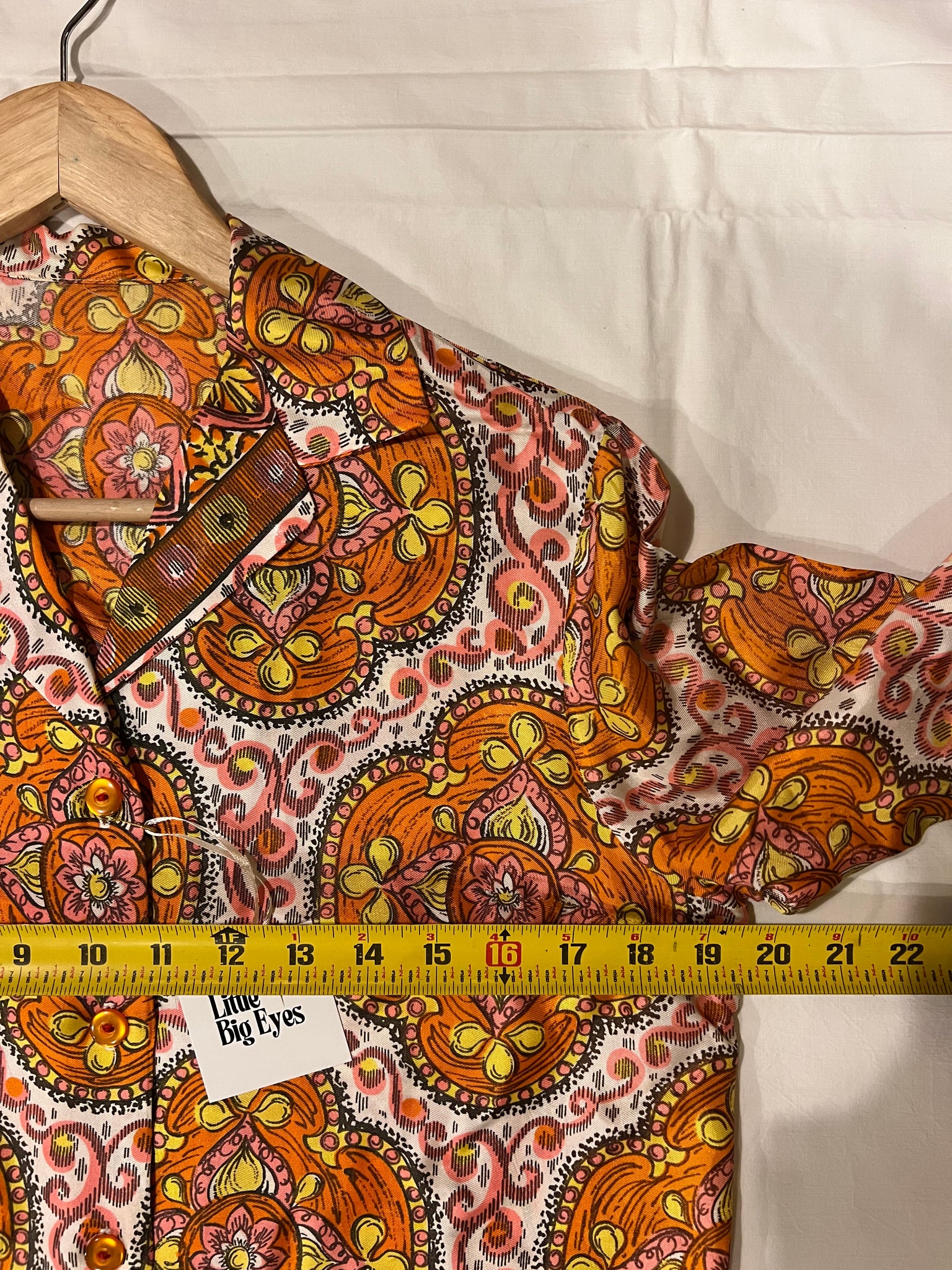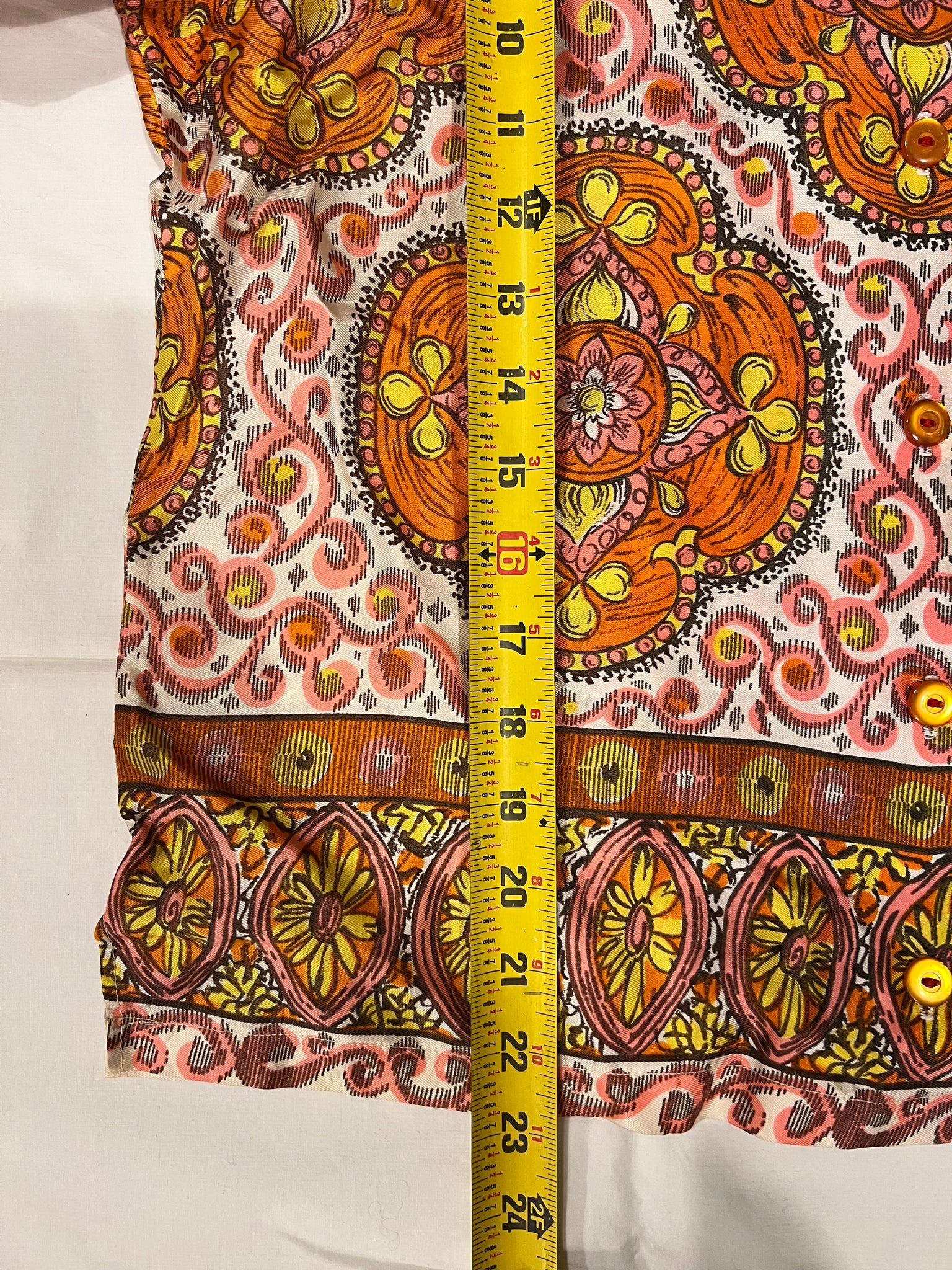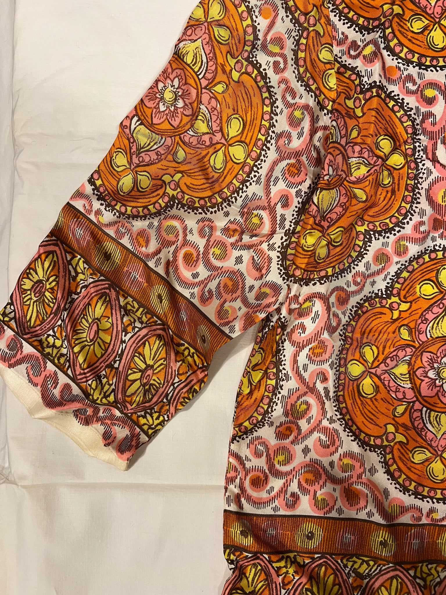 Beautiful retro 1960s/1970s orange & pink cropped quarter sleeve blouse - no tag - see pics for measurements