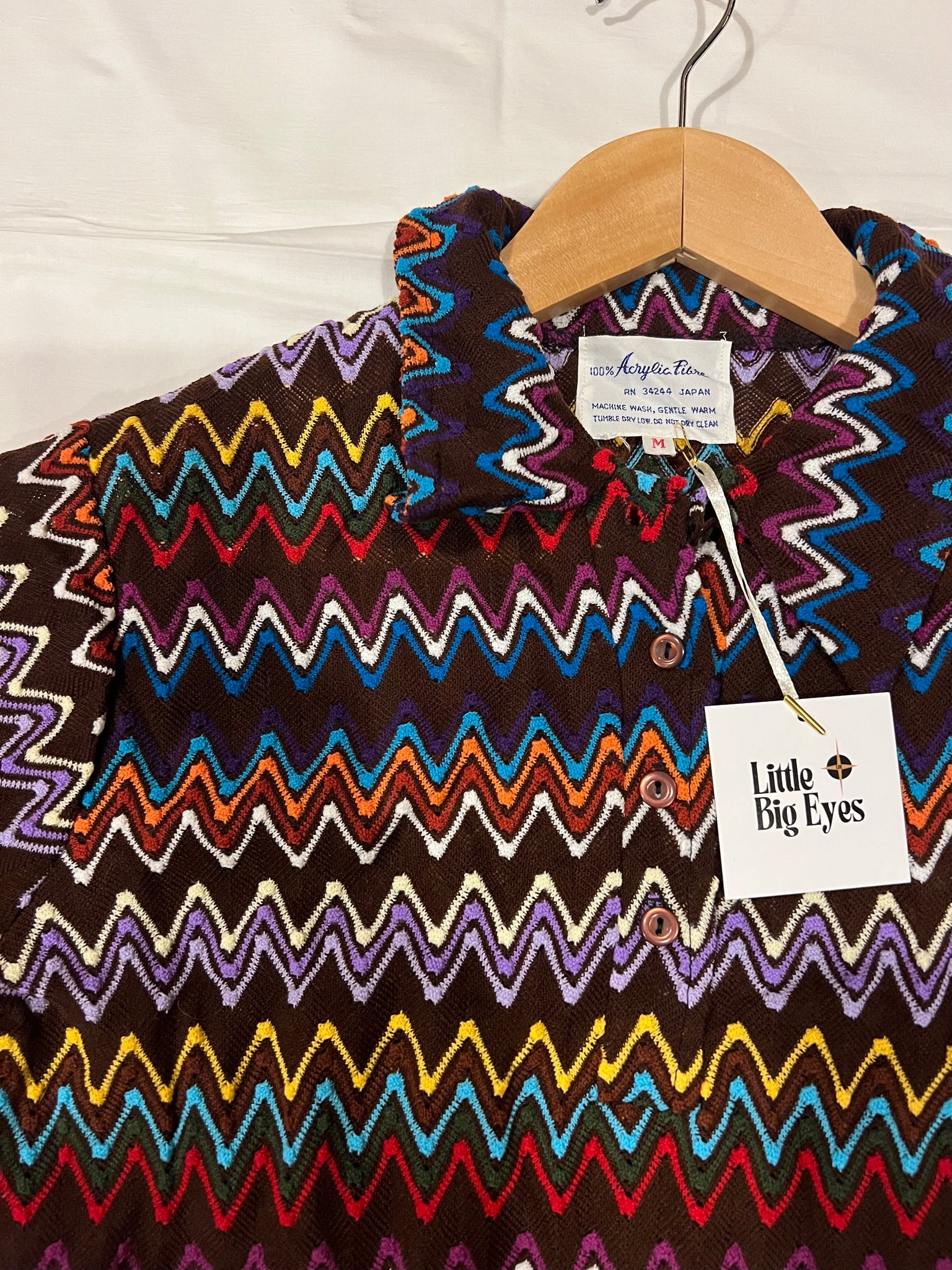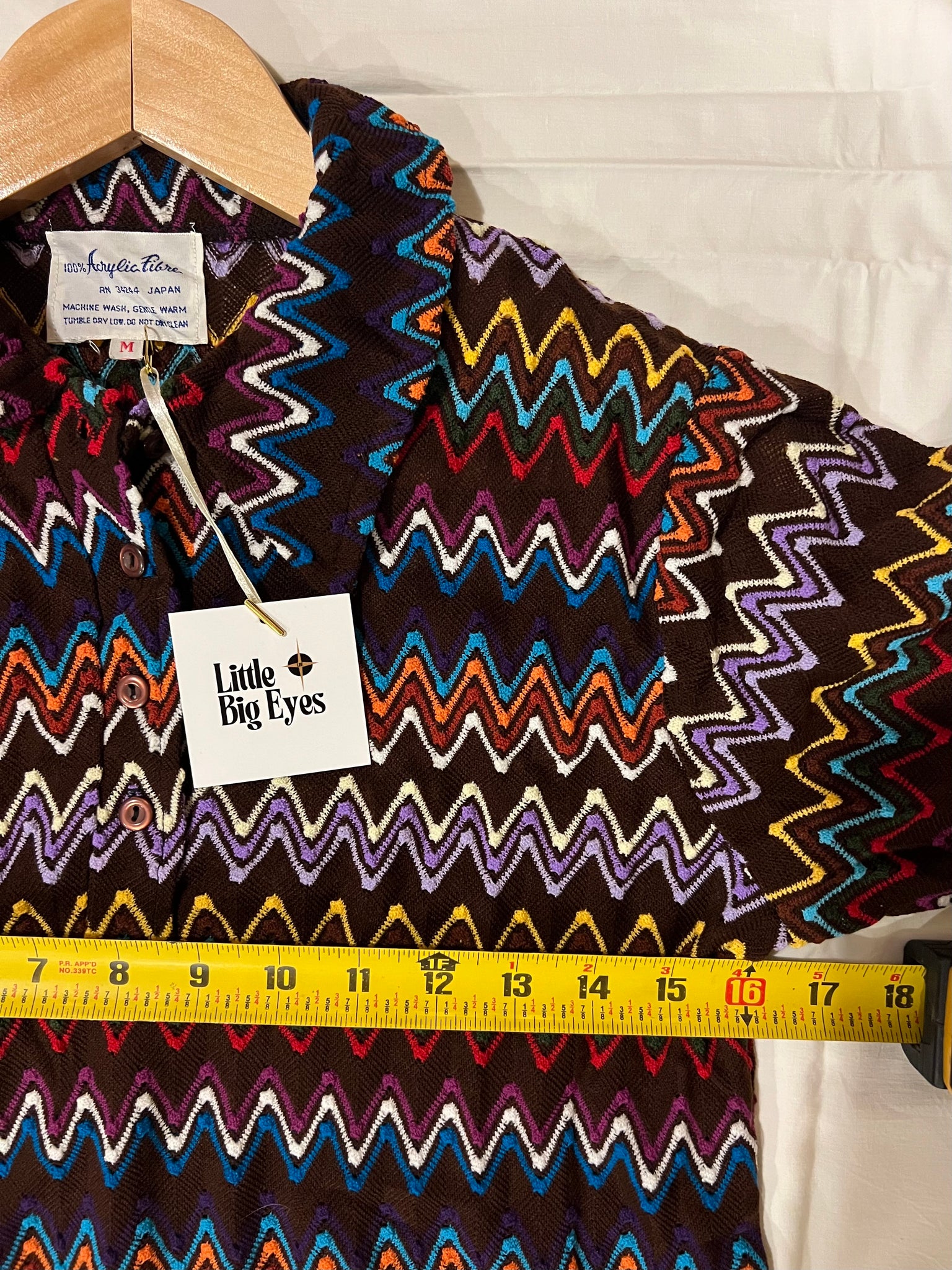 1970s Groovy “Missoni”-esque Zig Zag Multi colored knit top - size M - made in Japan - see pics for measurements