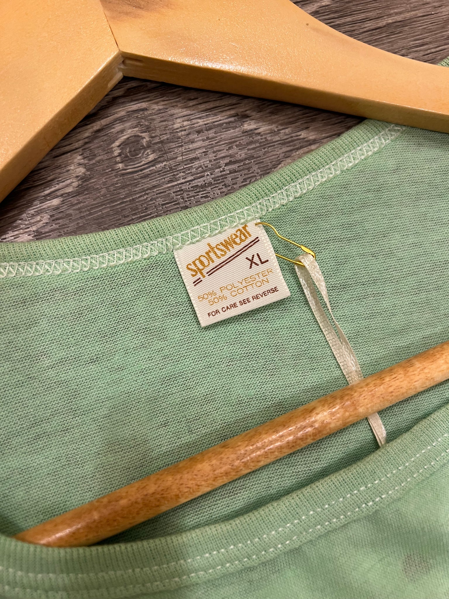 1980s Women's Cap Sleeve Elvis Graphic T Shirt - XL - Mint Green in almost perfect condition.